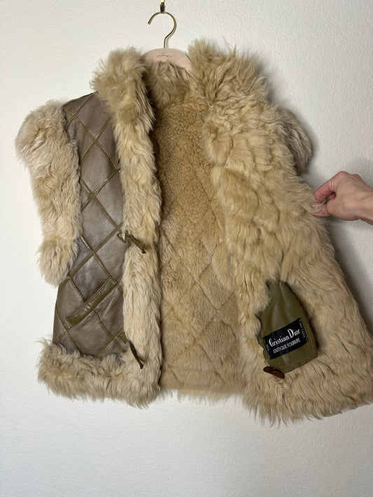 RARE 80’s Christian DIOR Boutique Fourrure Quilted Leather Shearling Toggle Vest (S/M)